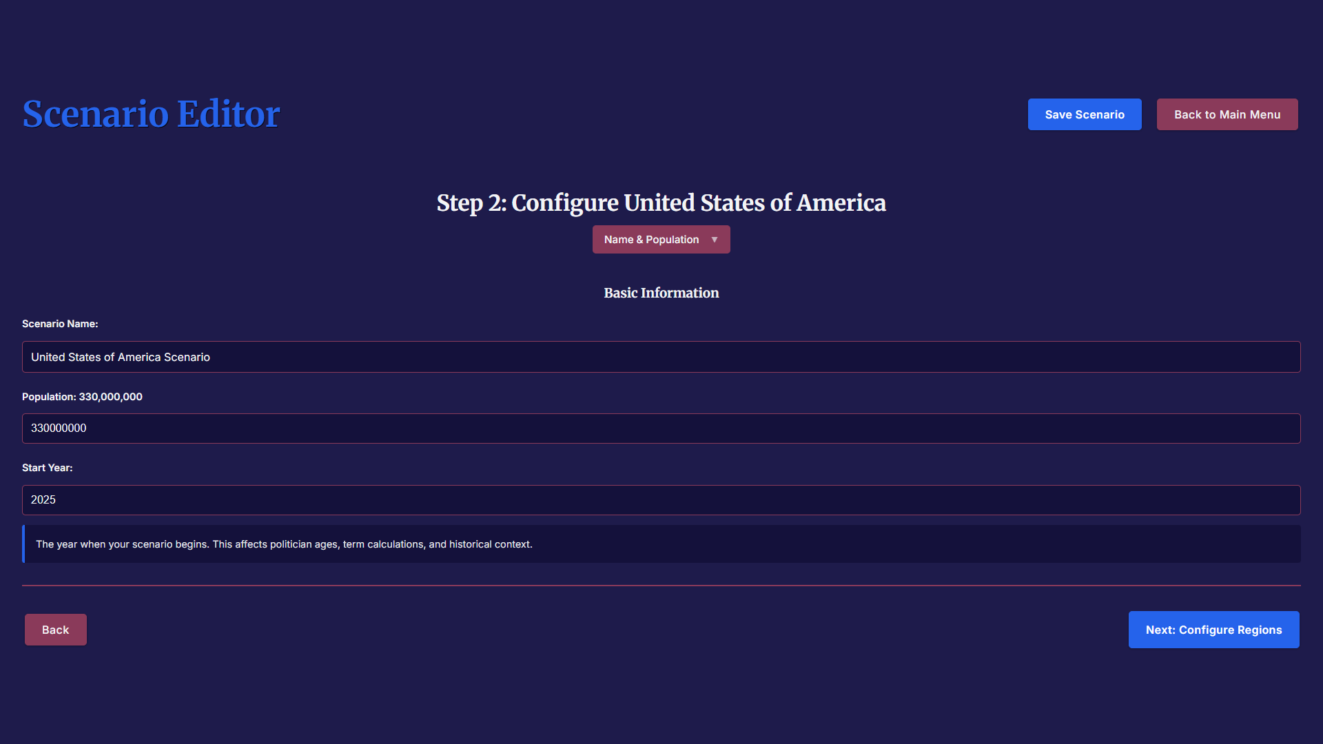 The next patch is scheduled for October 12th, with continued improvements to the Scenario Editor, new content for the U.S. elections, updates to Canada, and more. After that, the Steam page goes live on October 15th.