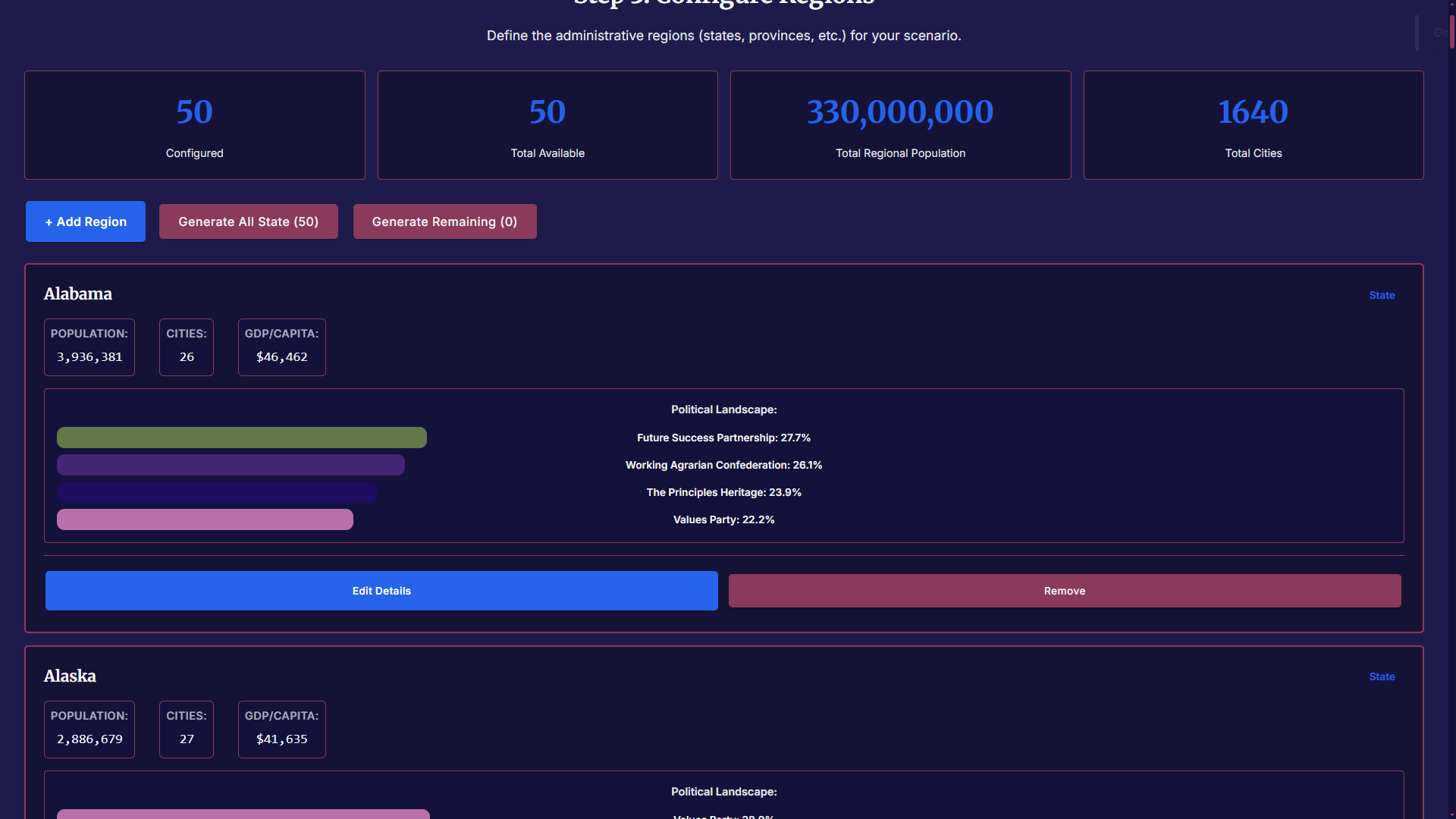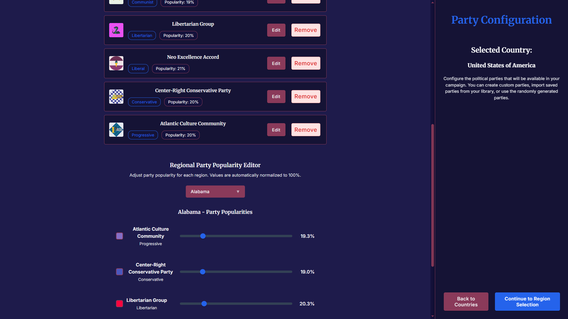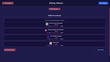 Party popularity can now be modified region-by-region in custom or pre-generated setups.