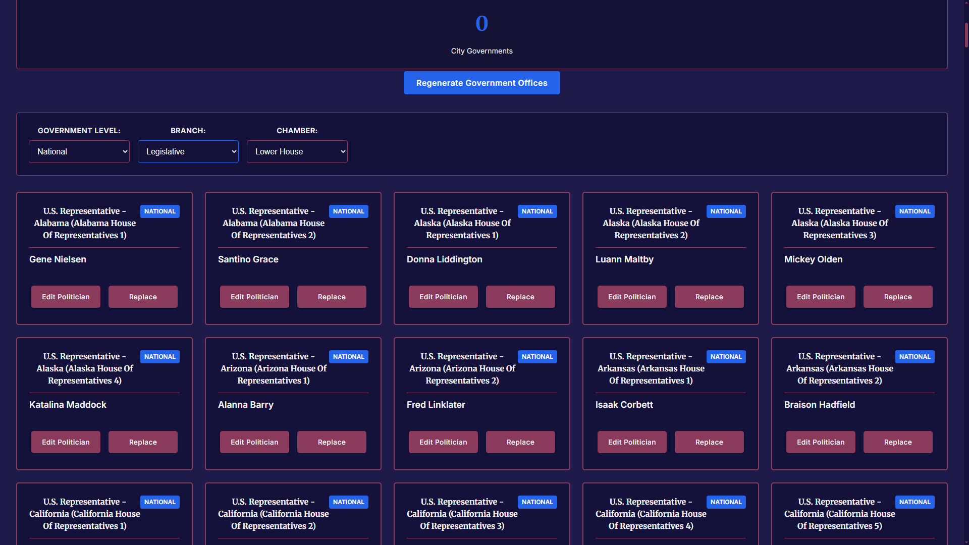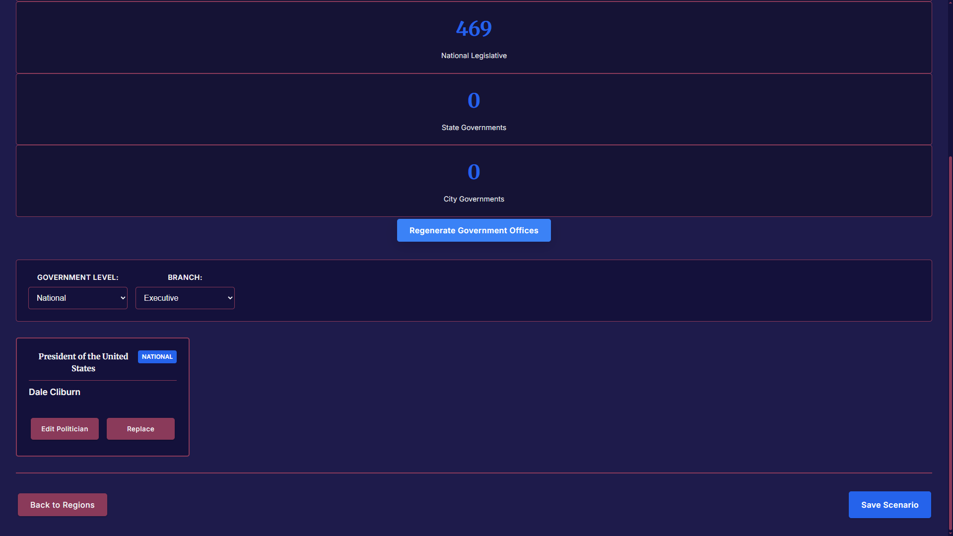 Added the ability to customize government offices within the editor, letting you set up your own officeholders and political lineups.