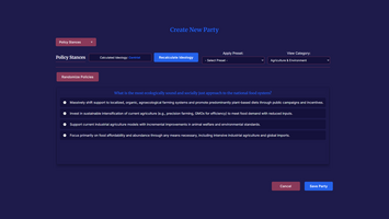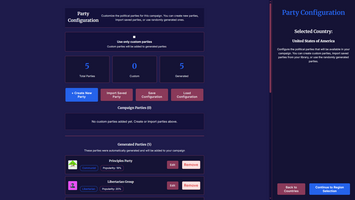 Added the ability to save and load party setups for campaigns, including popularity settings across each state.