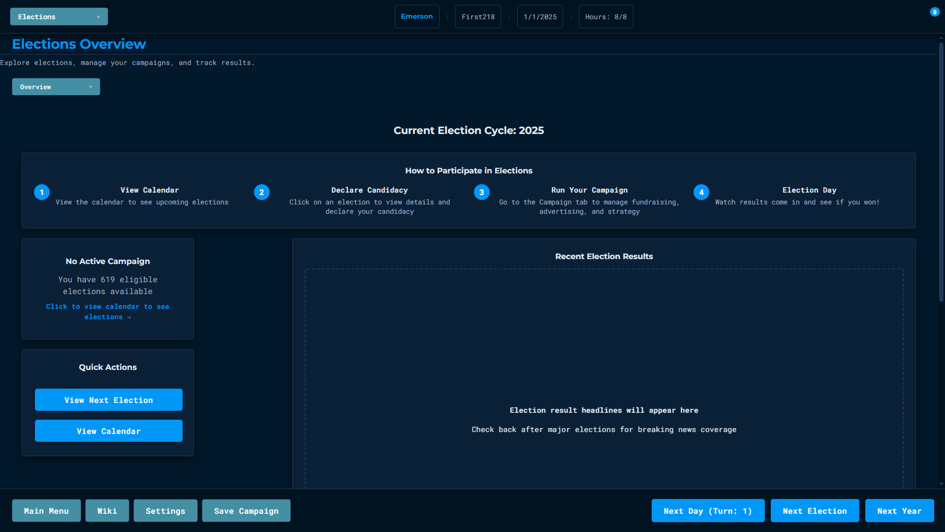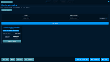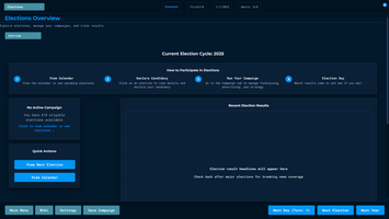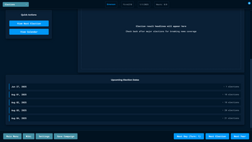 - The Main Menu UI has been overhauled to show a election on the main screen and with a different layout.