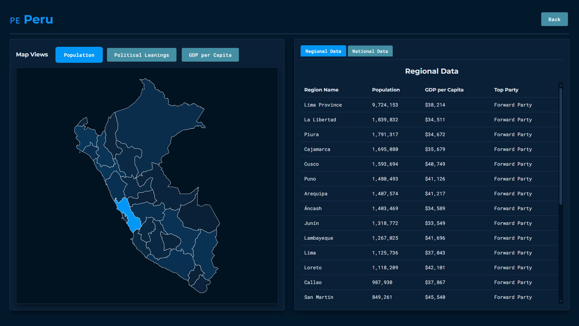 - All countries in the game have country maps that also have their population data, and proper connection to the country details screen.
