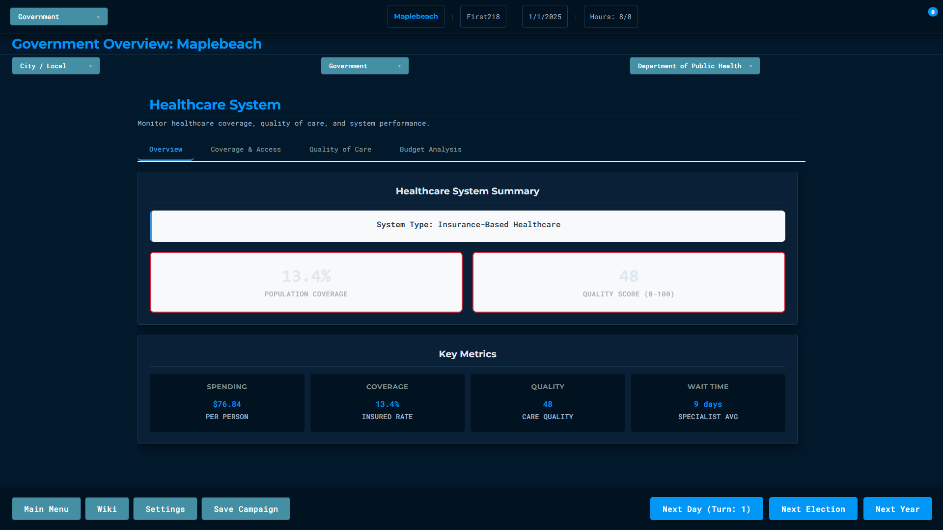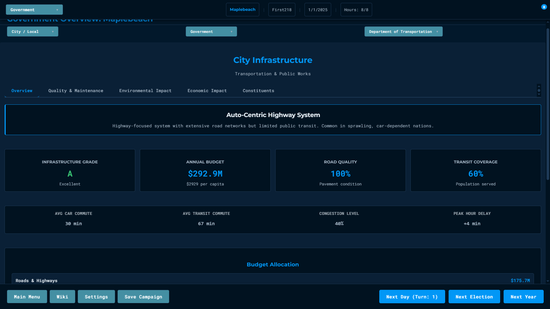City Tab UI Changes, Education UI Change, Healthcare Overhaul, Infrastructure Overhaul, Housing Overhaul
